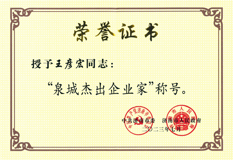 山東建工集團黨委書記、董事長王彥宏榮獲“泉城杰出企業家”稱號