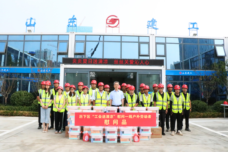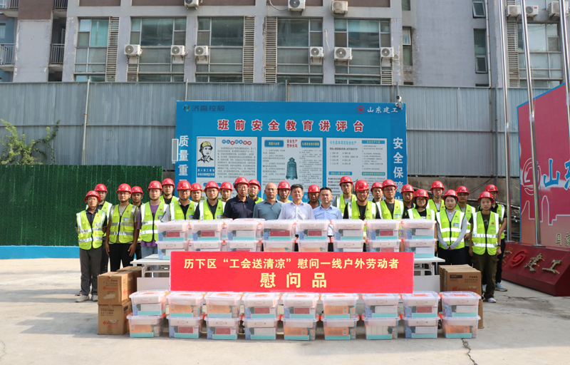 慰問項(xiàng)目包括:山東女子學(xué)院科技創(chuàng)新中心建設(shè)項(xiàng)目、濟(jì)鋼片區(qū)韓倉河幼兒園工程總承包(EPC)項(xiàng)目、美核電氣(濟(jì)南)核電關(guān)鍵儀控裝備國產(chǎn)化項(xiàng)目、中大南辦公樓項(xiàng)目、邊莊項(xiàng)目E地塊;德州京津冀生態(tài)產(chǎn)業(yè)園基礎(chǔ)設(shè)施建設(shè)項(xiàng)目、濰坊山東信息職業(yè)技術(shù)學(xué)院濱海校區(qū)實(shí)訓(xùn)樓項(xiàng)目、聊城山東工程技師學(xué)院產(chǎn)教融合實(shí)訓(xùn)中心建設(shè)項(xiàng)目、淄博中德職業(yè)教育產(chǎn)教融合示范基地(二期)項(xiàng)目、淄博火車站北廣場福昇片區(qū)城市更新項(xiàng)目。同時(shí),歷下區(qū)總工會(huì)亦為濟(jì)南中央商務(wù)區(qū)西片區(qū)城市更新項(xiàng)目、鳳凰路壹號(hào)項(xiàng)目提供了"夏送清涼"慰問物資。