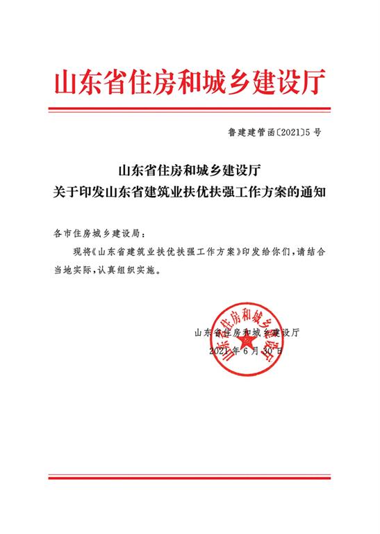 山東省住房和城鄉建設廳關于印發山東省建筑業扶優扶強工作方案的通知